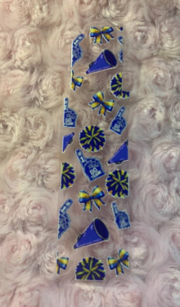 These Blue Cheer UV DTF pen wraps feature playful blue designs with fun, spirited details — perfect for cheer moms, students, teachers, or anyone who loves a pop of blue on their desk.
