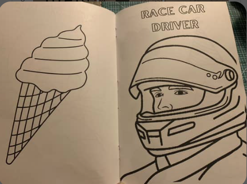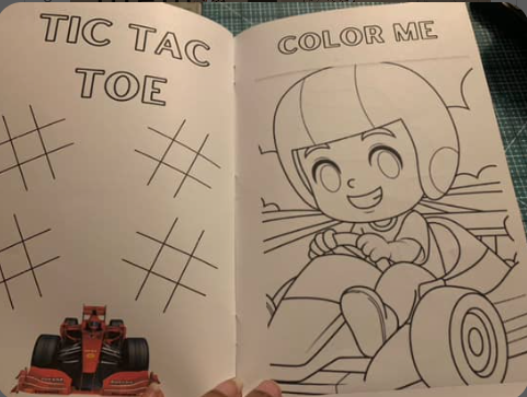 5.5" x 8.5" mini coloring books (10 pages total: glossy front & back cover + 8 inside pages)