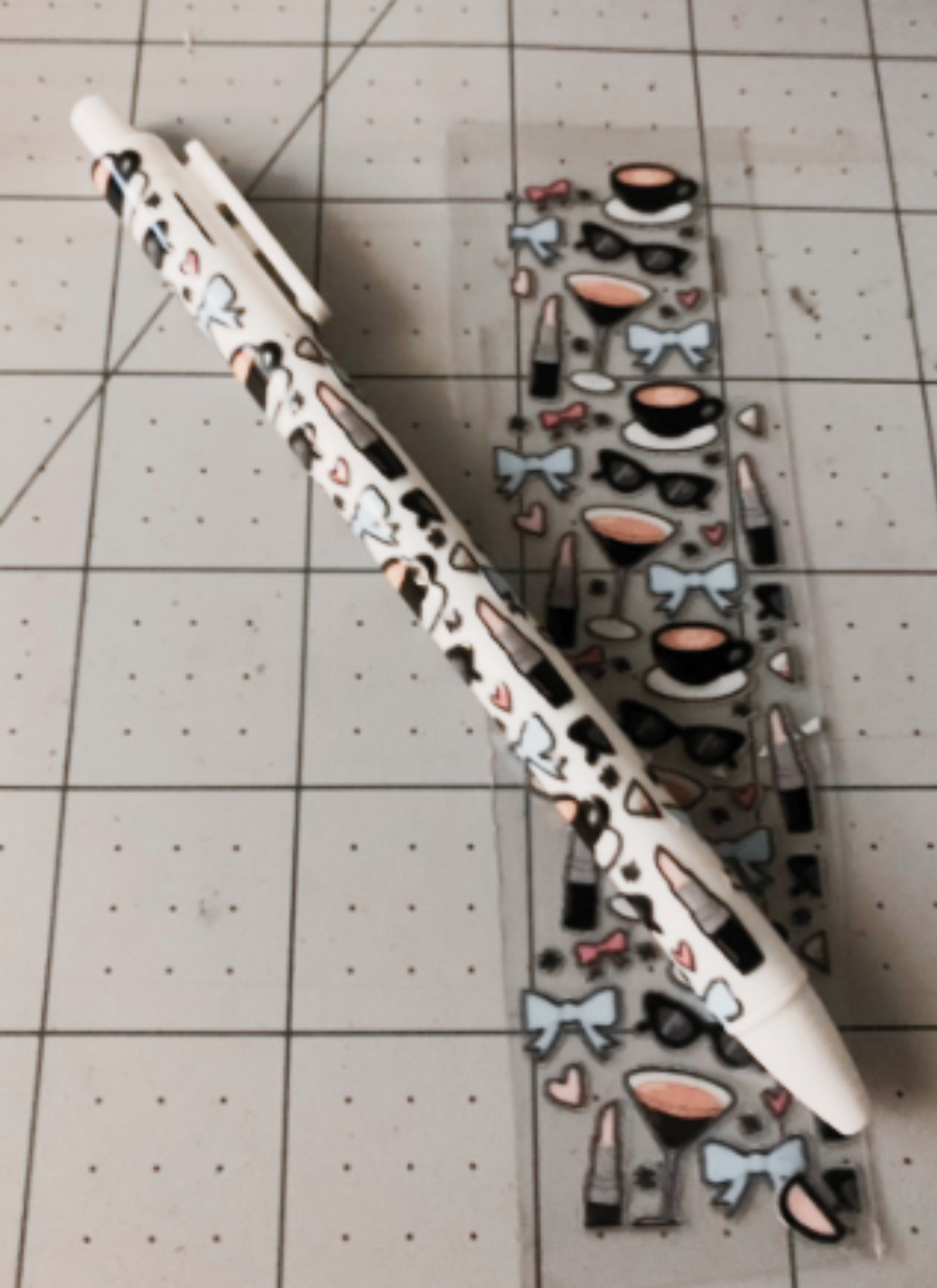 Stylish, sassy, and fun! 😎 These UV DTF pen wraps feature bold blue bows, lipstick, and sunglasses. Choose wrap only, blank pen + wrap, or fully wrapped pen.